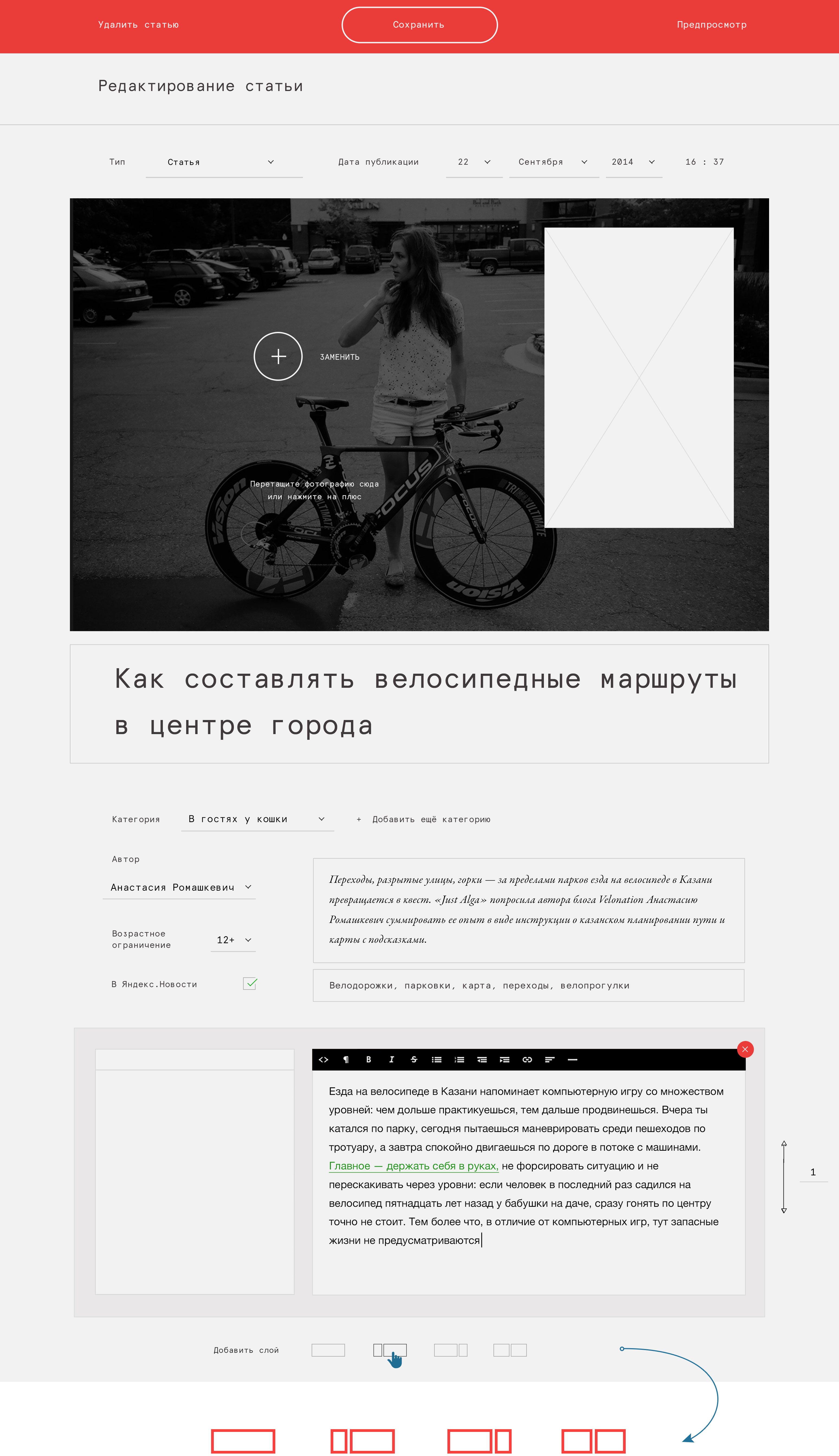 Каждый новый слой в публикации может выглядеть как угодно. А значит, свобода воображения редакции ничем не ограничена. За счёт этого тексты выглядят живо и наполнено, что обеспечивает вовлечение аудитории в чтение и взаимодействие.